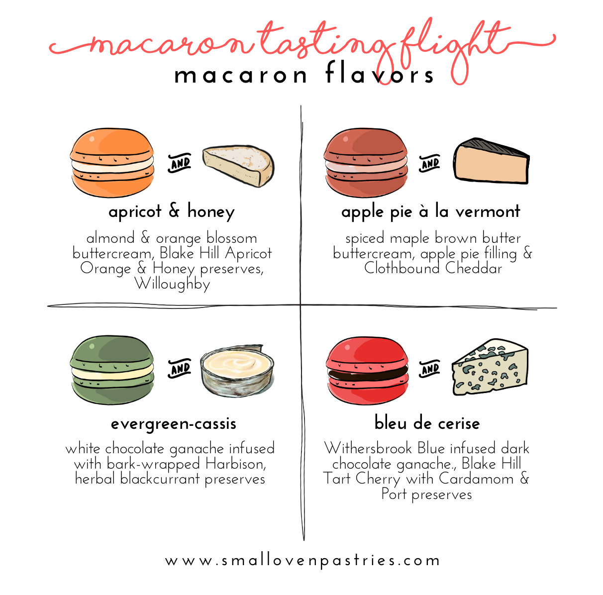 Small Oven Pastries — Box of 8 custom-crafted cheese pairing macarons. Two each of four flavors—one for you, one for your Valentine!